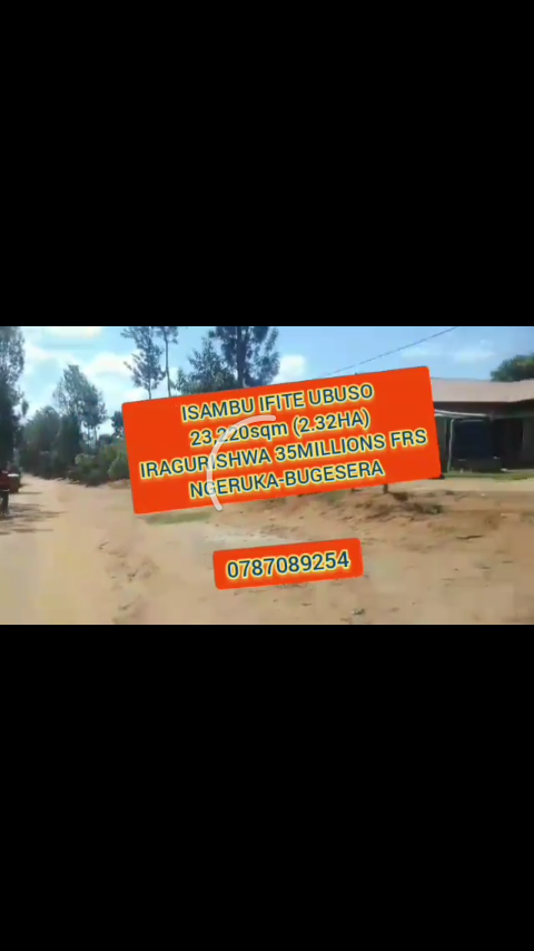 ISAMBU YA 2.3HA UBUSO 23,220sqm IGURISHWA 35,000,000FRS.